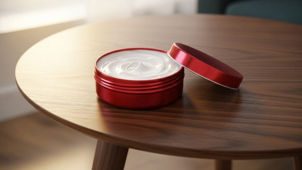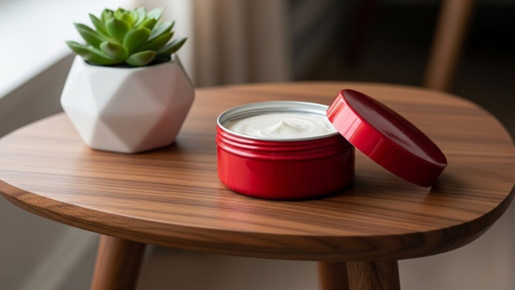 缶タイプは自宅用のメインクリームとして。朝のスキンケア、お風呂上がりの全身ケア、就寝前のハンドケア。たっぷり入っているから、気兼ねなく使えます。指ですくって手のひらで温めてから肌になじませると、より浸透しやすくなるんです。