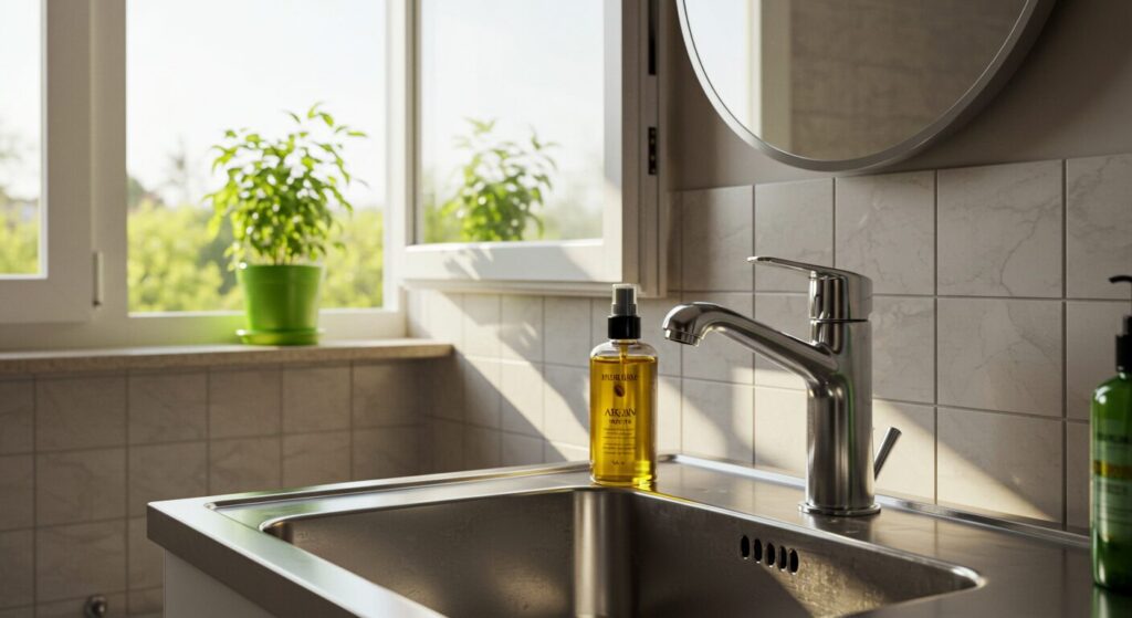 モロッコ原産のアルガニアスピノサ核油(アルガンオイル)も重要な成分の一つです。このオイルはビタミンEを豊富に含有しており、髪を外部の刺激から保護する効果が期待できます。