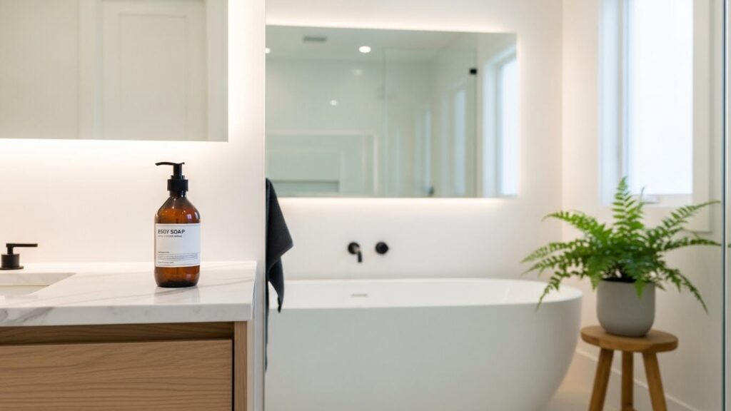適量を手のひら、またはバススポンジやタオルに取り、全身に馴染ませながら洗います。泡立ちは控えめなものが多いですが、それが天然由来成分の証。無理に泡立てようとせず、肌の上で優しく滑らせるように使うのがコツです。
