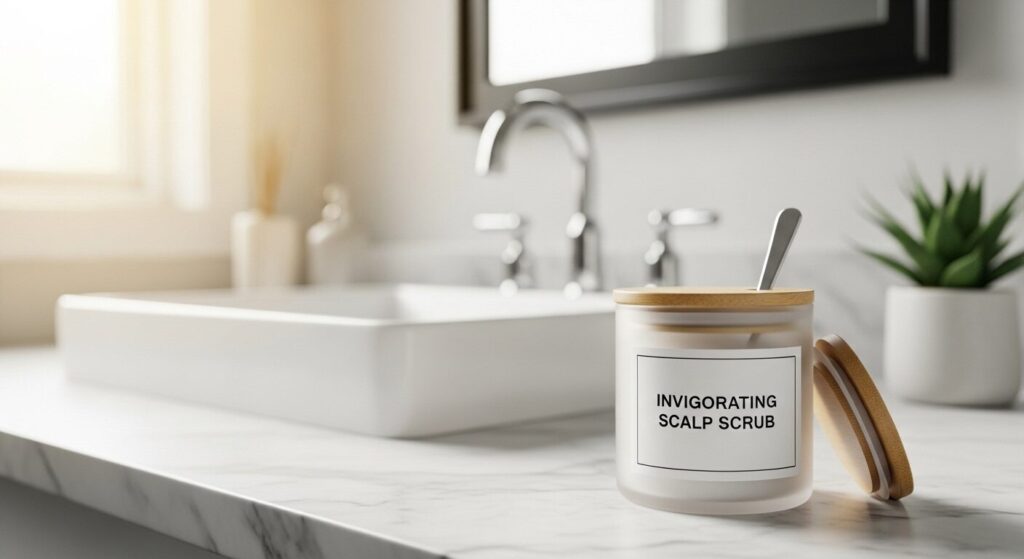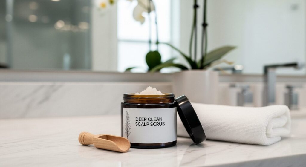 ぬるま湯で完全に洗い流します。スクラブ成分が残ると頭皮トラブルの原因となるため、念入りなすすぎが重要です。