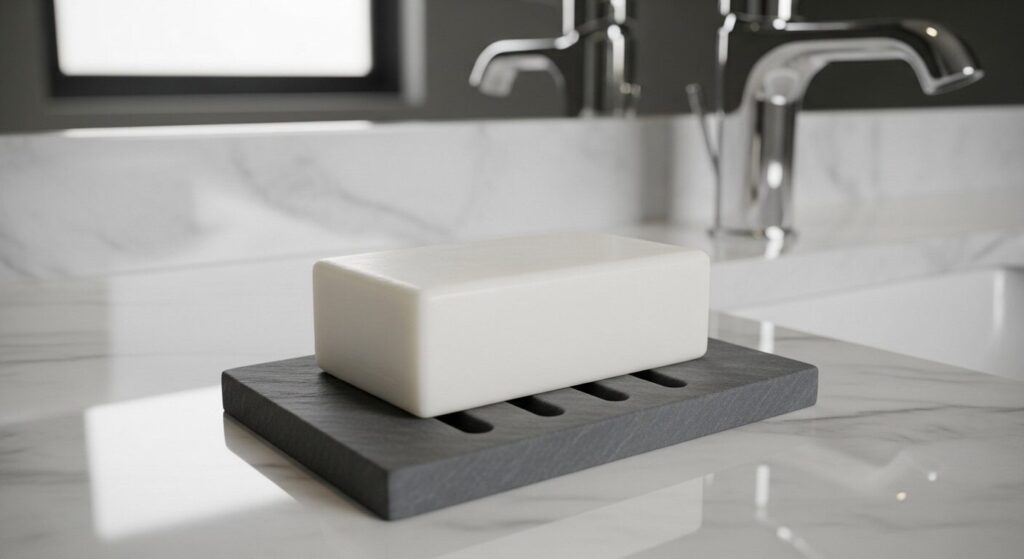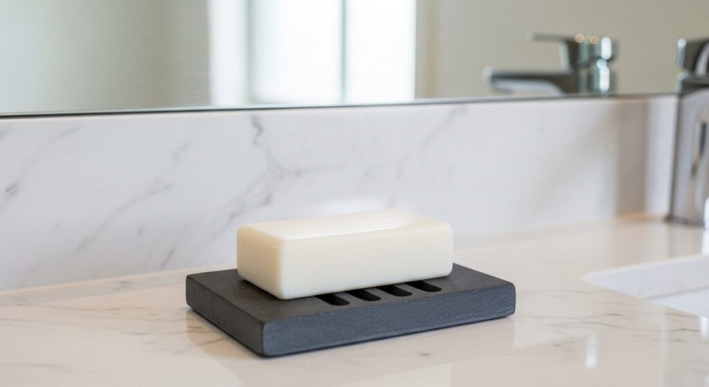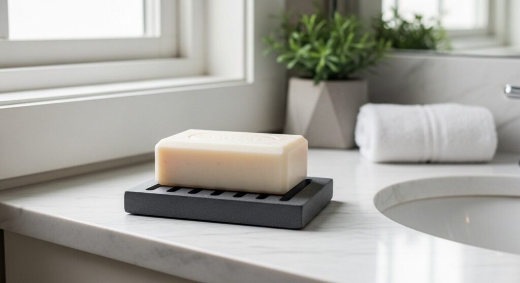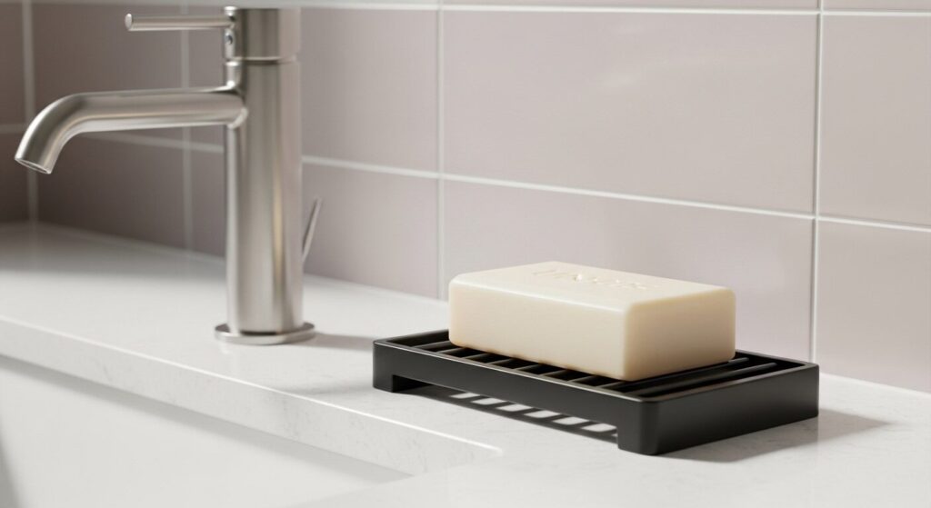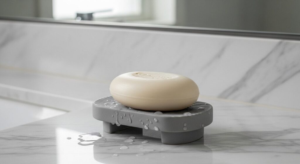 使用後は石鹸を軽くすすいで水気を切り、水はけのよいソープディッシュに置いて乾燥させる習慣をつけると長持ちしやすくなります。